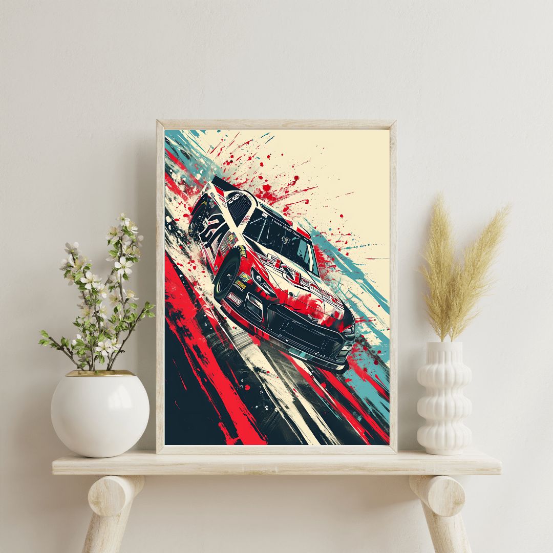Cuadro de coches con un estilo abstracto y llamativo, perfecto para la decoración del hogar u oficina.