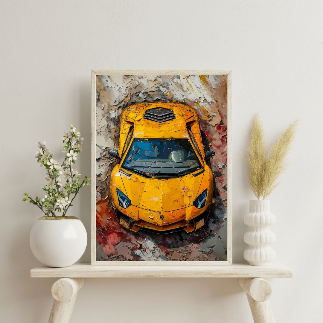 Cuadro de coches con un coche deportivo de lujo con un estilo de pintura, perfecto para la decoración del hogar u oficina.
