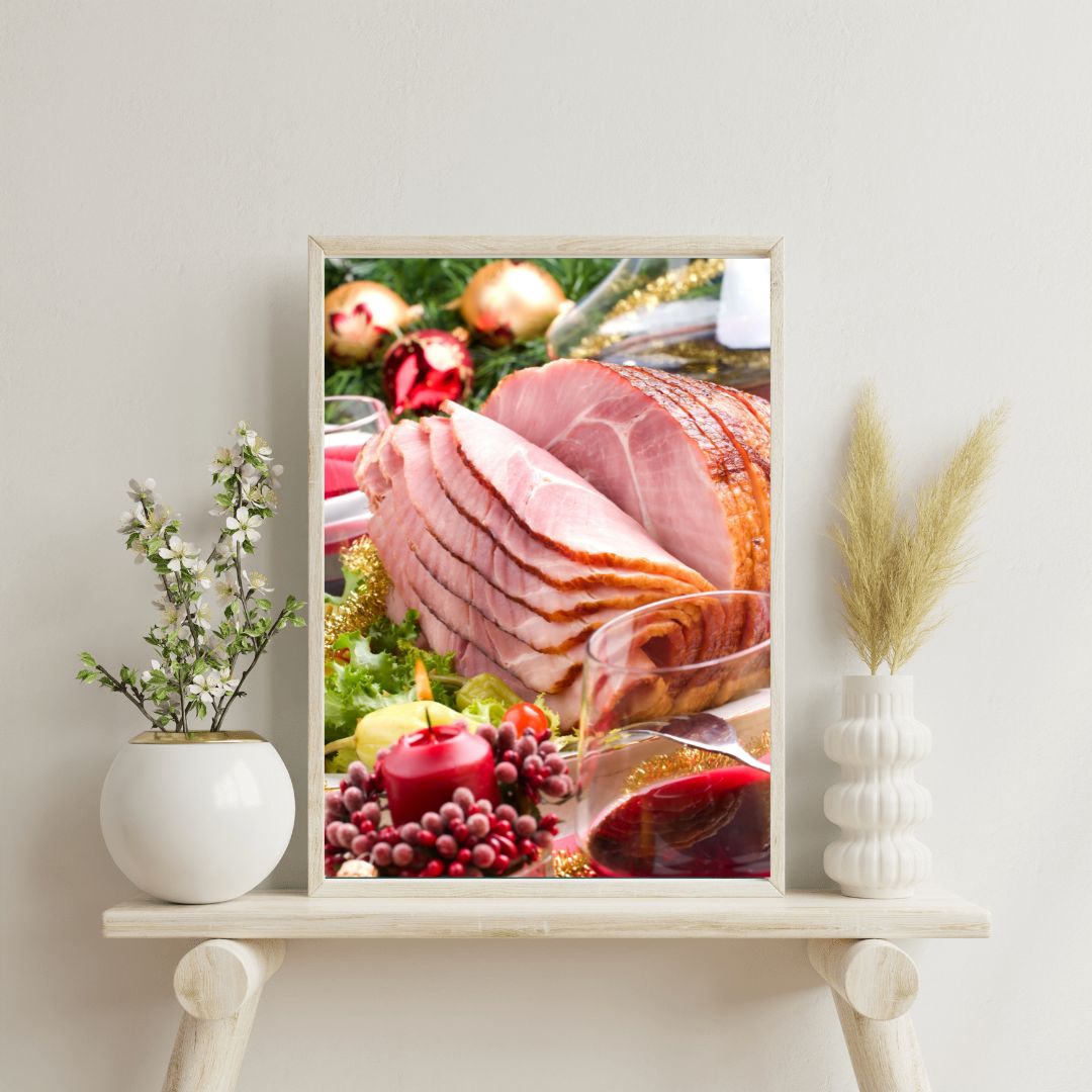 Cuadro de comida ideal para cualquier amante del jamón para colgarlo y demostrar su pasión por el sabor ibérico, perfecto para la decoración del hogar u oficina.