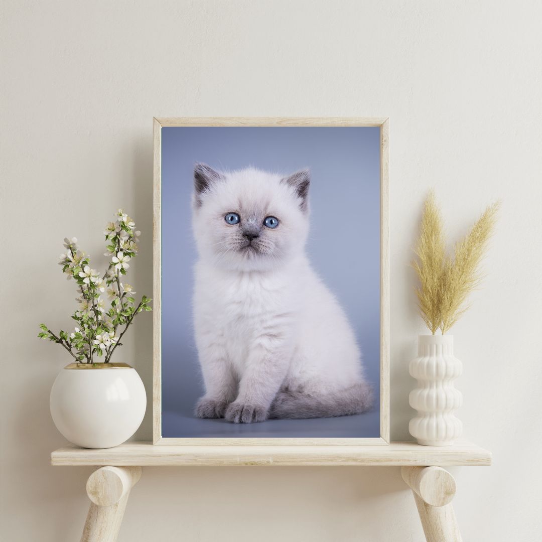 Cuadro de gatos que presenta un gatito bebé que llenará todos tus espacios de una gran ternura con su mirada de inocencia, perfecto para la decoración del hogar u oficina.
