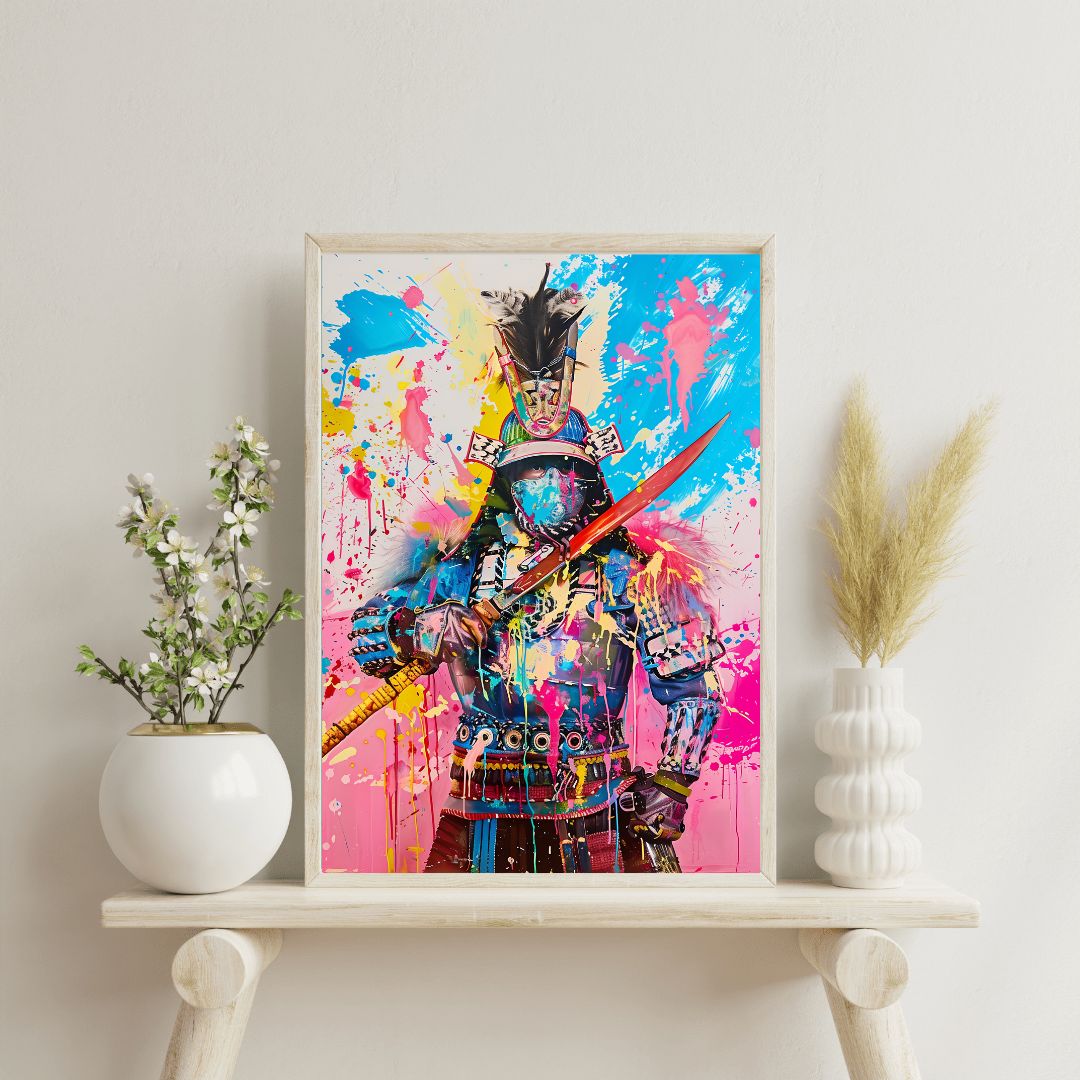 Cuadro con estilo Pop Art que con un diseño de un guerrero samurai lleno de color y muy llamativo, perfecto para la decoración del hogar u oficina.